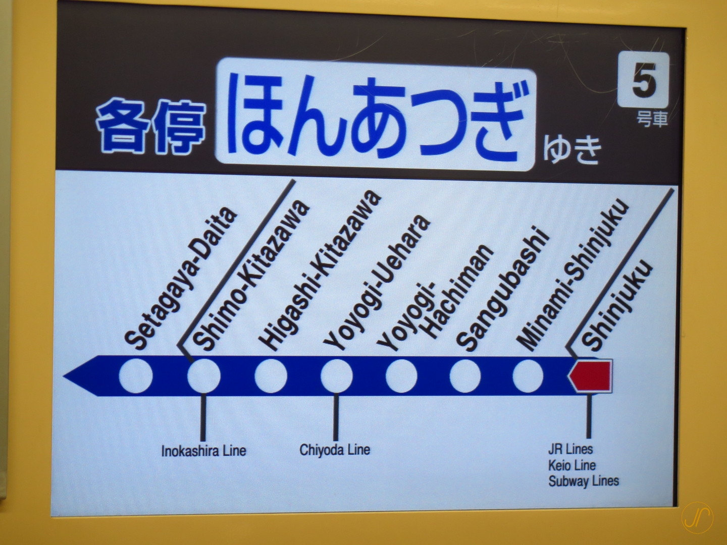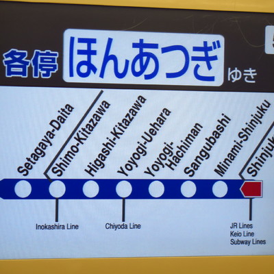 Folgen Sie den Fotos von links nach rechts. Mit der Odakyu Line gelangen Sie von Shinjuku nach Shimokitazawa.